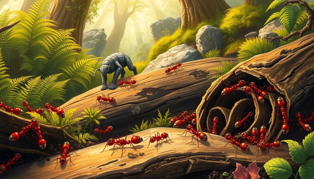 Ameisen spielen eine wichtige Rolle im Ökosystem. Sie dienen als „Gesundheitspolizei,“ indem sie Aas und tote Insekten beseitigen. Durch ihren Nestbau verbessern sie die Bodenqualität und tragen zur Samenverbreitung bei.